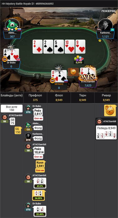При этом в одном турнире я выбил вообще всех за финалкой и закончил её с 120бб