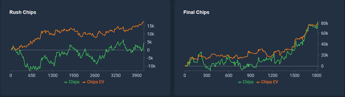 Я играл в основном зум, так как не хотел заниматься селектом и следить за кучей столов, я понимал, что это менее плюсовая тема, но меняться не хотел, в целом я сыграл примерно 1,5м рук на старзах, в основном нл2-5 и немного нл10. По последней базе в пт3 у меня было примерно 800к рук в минус 350$ c недобром 300$, в бб по ев я даже был в плюсе. Но со всеми плюшками от старзов и доездами во фрироллах я был даже в плюсе. (На этом участке мне кажется были некоторые статистические аномалии, потом может напишу, уже получилось полотно)