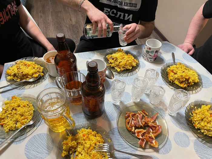 До Рязани вместо четырёх часов добирались больше шести. Сама команда по этому же маршруту ехала с утра восемь часов. На выезде из Тулы всё стоит, вся трасса заставлена фурами. Пока мы добирались Д. уже приготовил плов.
