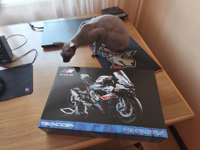 На очереди мотоцикл. Рядом Мурзик, мой любимый лысый дружочек 😁