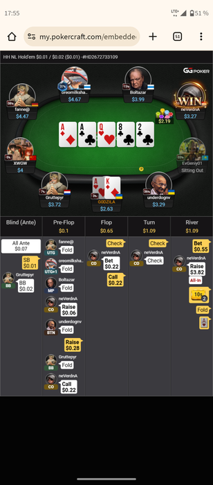 G0DZILA, на микросах, в олл ине ривера будет мало блефов(правильная страта-пас-деньги спас) возможно тут был блеф, но на дистанции колы олл инов будут минусовыми, пас-хорошая игра