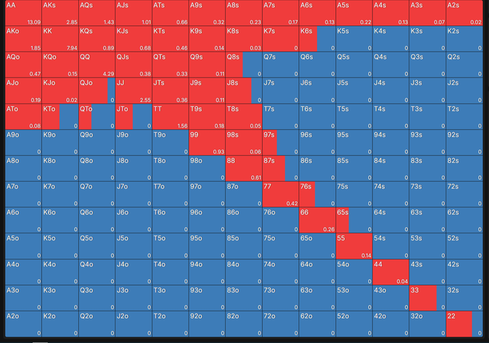 Ну и проверь настройки, какая глубина ББ, сколько игроков, какая стратегия(чип/ев), бабл или нет. Из-зза всего этого он можешь урезать ренджи.