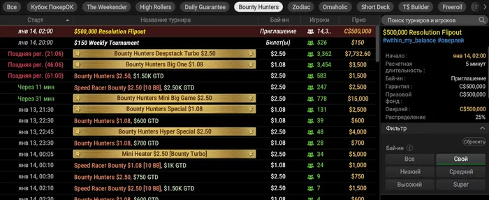 Играйте в турнирах Bounty Hunters - тут нужно открыть нужную вкладку с турнирами. Задание не очень чёткое, не понятно что значит "играйте в турнирах". В каком количестве, не понятно. Я зарегался в три турнира, в двух дошёл до призов и закрыл игру, так как нужно было уходить. В призы попадать не обязательно, задание будет пройдено, когда турниры закончатся. Лично я заходил в обычные Bounty Hunters, которые НЕ выделены золотой полоской.