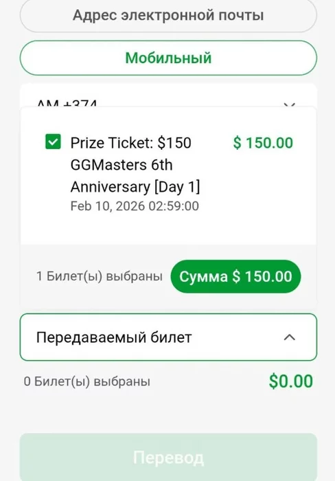 Продам за 130$ билет T150$ GGMasters 6th Anniversary Day1, выпал в нокауте Мистери. Мне, увы, не по банкроллу. Кто планировал сыграть - сэкономит 20 долларов, ну и мне не придётся мучиться и играть сложный для меня турнир. Все в плюсе.