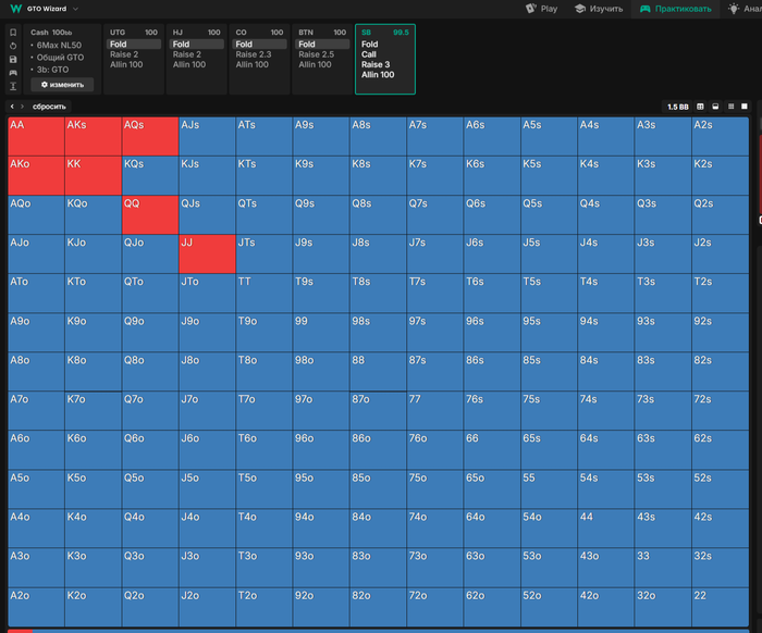 Я буду открываться так же ,как на BTN ? так буду играть без позиции.Против тайтовых буду открыватьт 100%