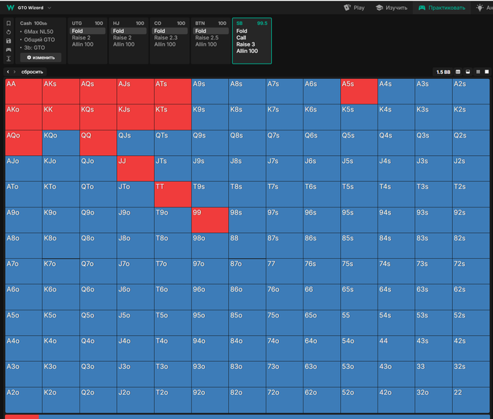 После рейза с UTG и HJ рейзим следующие руки ещё добавим A5s
