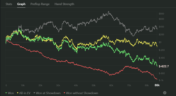 Решил ворваться в покер в 2026 (наверное, это уже -ЕВ решение). Как видно по дате регистрации, в студенчестве немного увлекался, но все ограничилось кэшаутом пары сотен долларов с PS и возвращением в учебу. Недавно завязал со старой профессией и, в поиске себя, вспомнил про покер, в надежде сделать его основным заработком. Депнул 80 баксов на GG, проскочил nl2-10, и с фантастическим банкроллом в 15 БИ, имея в багаже знаний статьи с pokerstrategy 2008 года и интуицию, пошел покорять nl25.