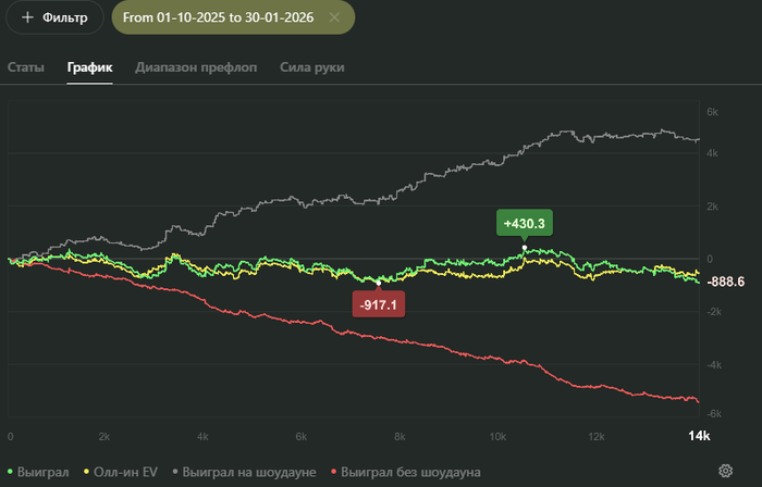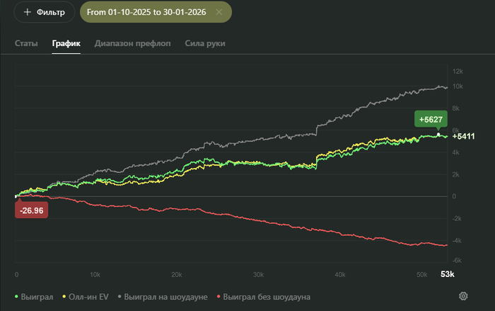 С тех пор играл бросы и ппп от джипситим, пока к 2025 году игра там совсем не увяла. В 2025 году начал играть во всех еврорумах, пробовал себя в качестве гриндера RnC на покерке. Сейчас вернулся снова в еврорумы + играю альянс массив в клабГГ нл100 - нл200.
