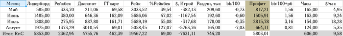 Плюсовый винрейт пре рб мне не удалось показать ни на одном отрезке дистанции и учитывая абсолютно провальные результаты августа (у меня никак не получается учитывать рб и джек в качестве винрейта), признал себя профнепригодным рейкомесом в раше и вернулся к работе менеджера покерных лобби)