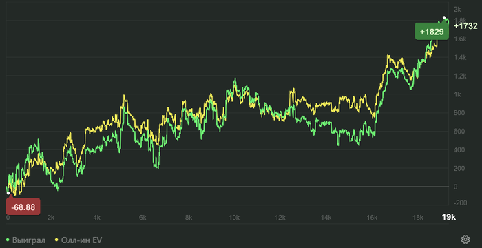Август протекал в лютой агонии, скорее всего негативная дисперсия тоже внесла свой вклад. Под конец месяца мне таки раздали джекпот, от которого я уже физически не смог получить никакого удовольствия. Так же удалось крутнуть максимальный фишбаффет на 1200$(или что то вроде того). Оба эти события помогли мне отмазать месяц сильного залива, но осадочек остался.
