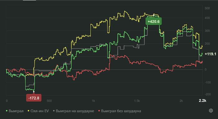 Zergling @ 28.01.26Плюсовый винрейт пре рб мне не удалось показать ни на одном отрезке дистанции и учитывая абсолютно провальные результаты августа (у меня никак не получается учитывать рб и джек в качестве винрейта), признал себя профнепригодным рейкомесом в раше и вернулся к работе менеджера покерных лобби)