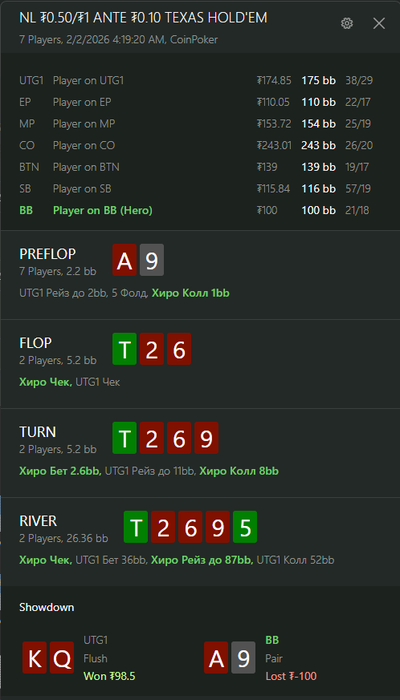 Zergling @ 29.01.26capricorn8, Тяжело держать топовую концентрацию для перевеса в мелких банках, когда играешь на лидерборды на скорости 1200 раздач в час много часов подряд. Пришлось пожертвовать качеством. $/час от лидербордов вроде как перевешивает качественную вдумчивую игру на паре столиков раша.
