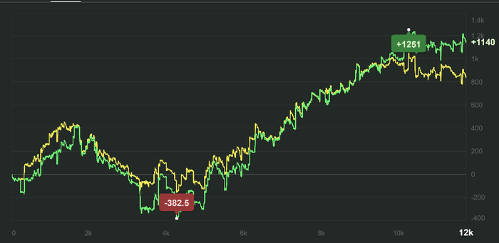 В начале 25го года игра в моих клубах на бросах и в ппп стремительно сходила на нет. Даже сезонность улучшения игры зимой и в праздники не помогала. Отыграв январь в минус, поскитался по еврорумам, но ничего особо не получалось. Словил тотальную усталость от менеджмента лобби и прокликивания столов в поисках любителя. Каждый раз ловлю себя на мысли во время сессии: если катка собирается хорошо, то есть удаётся набрать хотя бы три столика с адекватными любителями, мне играть в кайф и получается выдавать большую производительность, даже не смотря на то, как плохо может складываться в конкретной сессии или на каком-то отрезке времени. В противном случае, когда столы постоянно распадаются и любителей совсем нет, то мотивация продолжать сессию падает довольно быстро. Тут мне пришла в голову интересная мысль, если мне так нравится непосредственно играть, то почему бы не вернуться к истокам и поиграть за столами быстрого покера, за которыми я не играл с конца 2019 года. Прикинул, что даже при игре в ноль на раш50 с лидербордами должно выходить неплохое ожидание.