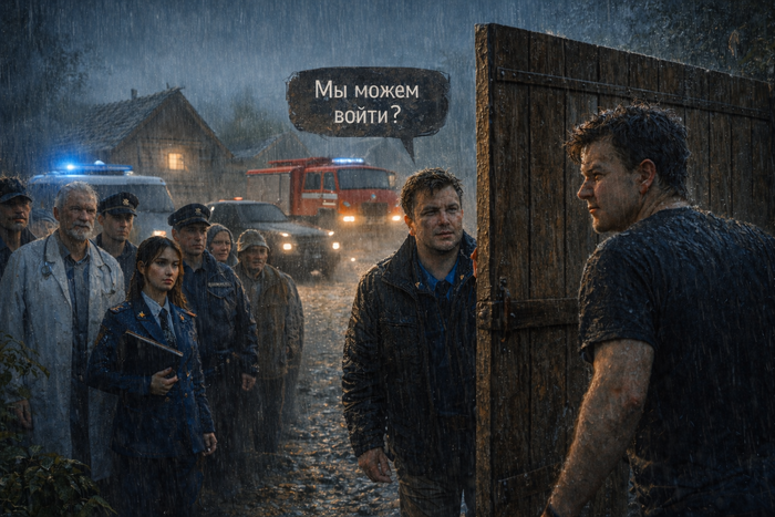 Пустил двоих прокуроров и одного сотрудника ОДН под козырек дома, чтобы не мокли. Во-первых, людей жалко, а во-вторых, я еще не понимаю, что случилось и надо зарабатывать очки лояльности. Остальные расселись по машинам. Местные разошлись.