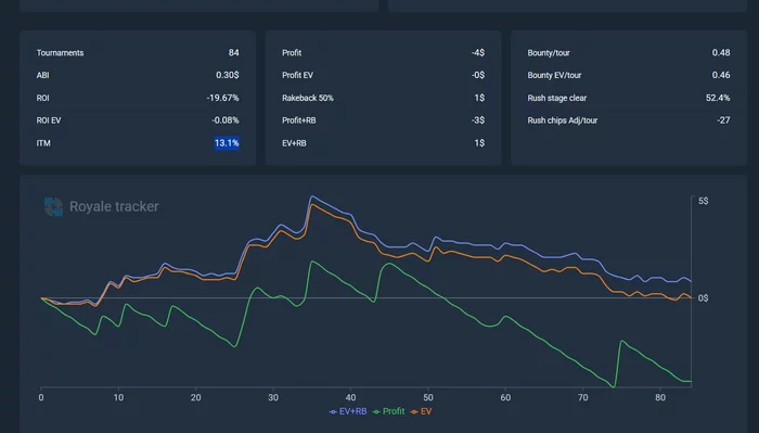 Ситуация) вчера с ЛБ упало 6 билетов 0.25. БР 0 , напомню. С этих 6 билетов раскрутился до 4$. С этих 4 раскрутился до 20 (вспомнил омашное прошлое). И тут ко мне подсаживается агроманьяк. Естестевнно БР стал 3,67) по EV должно быть еще +20) , ну не повезло ,ок , бывает.Вышел из за стола.Думаю ок, грузану один MBR за 3. И добрый вечер , БР 50