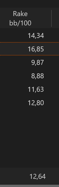На 9max столах у меня на очень большой дистанции примерно 18бб/100 "рейка". Но нужно учитывать, что не вся сумма считается "рейком". Например часть этих оплат идет на пополнение джекпота, и рейкбек на эти деньги не засчитывается.