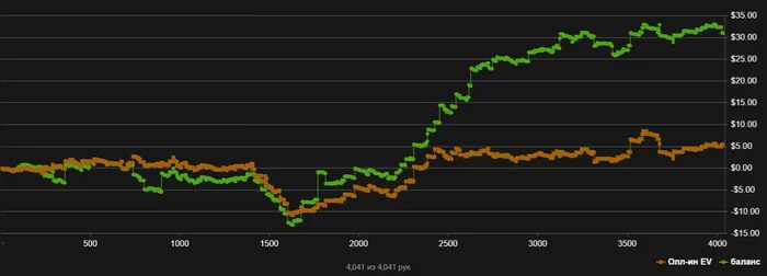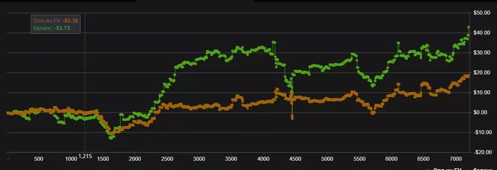 Там где на графике жесткие падения, меня раздевали фиши, которые постоянно ставят страдлы. Ну плюс немного тильта)