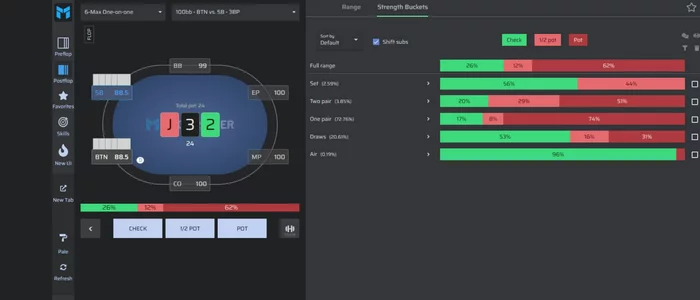 Написал ему, рассказал всё как есть. Он дал мне пройти опены в симпле и сказал: «Окей, есть над чем работать, но если ты правда готов вкалывать, как пишешь — давай пробовать». Меня закинули в группу к ребятам со 100-200. Первые полтора года в фонде — это был ад. Я работал по 200+ часов в месяц, тыкал солвер до посинения, не пропустил ни одной тренировки за первый год. Я быстро понял одну вещь: по сравнению с МТТ, где поля суперплотные, в 5 картах просто никто не умеет играть. Я мог часами сидеть в ХА или 3-максе с двумя випами. Многим регам стоит задуматься: поля в прилах отличные, но работать над игрой мало кто хочет. Хотя есть нюансы: обязательный VPIP 45-50% и конский рейк.