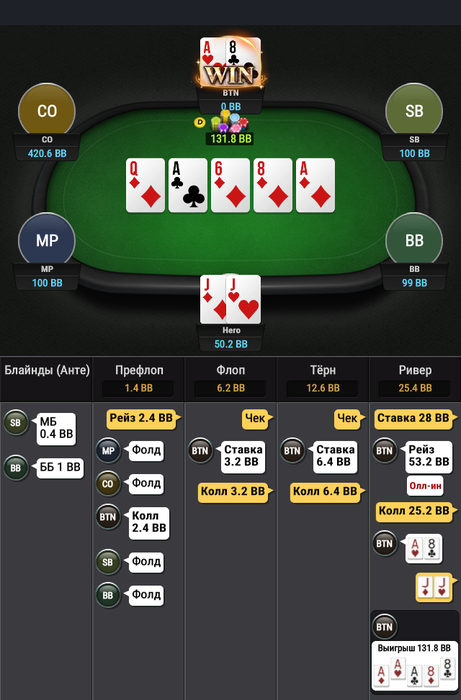 Поиграли недолго: +20бб, он встал — я тоже не стал испытывать судьбу и аккуратно вышел.