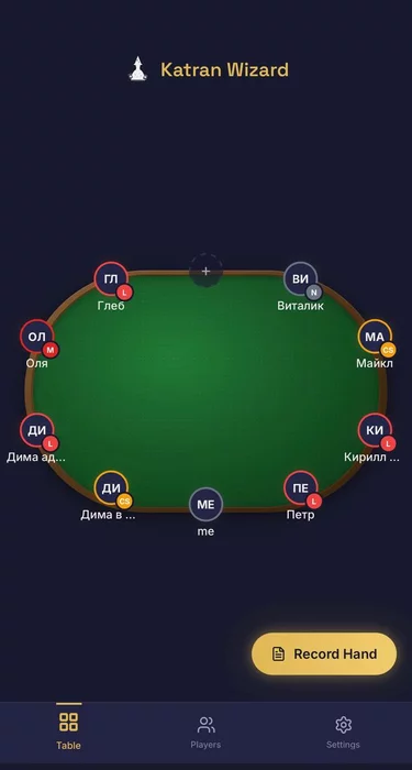 Покерный стол на 10 мест, тыкаешь на место, садишь игрока.