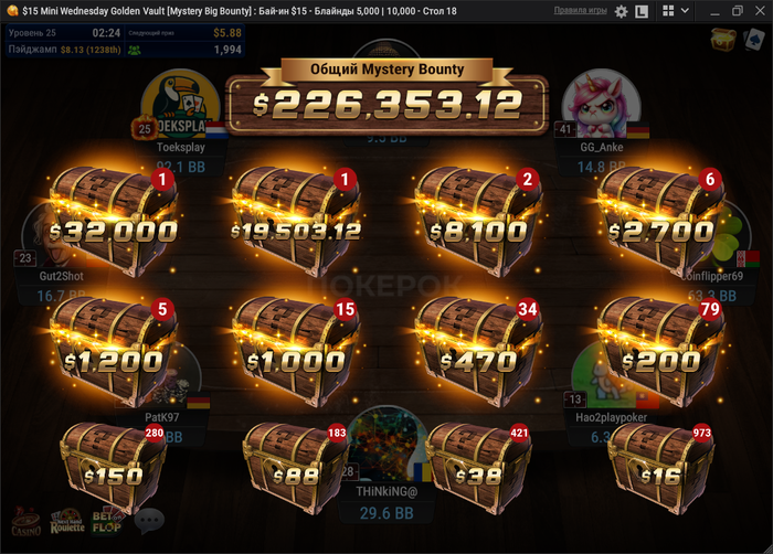 И ещё не пропускай ни одного Mystery за $15, просто посмотри на эти призовые, это же пиздец покерная мечта, которая в любой момент может стать явью: