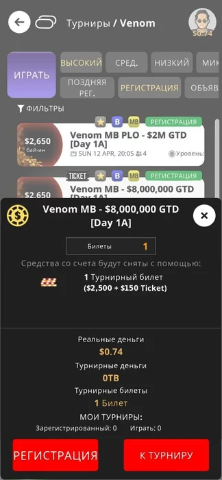 Играю аби10 , +- играю норм на этих лимитах, до этого момента макс. играл 150$ GGmasters, ито через сатик , и тут бац - выиграл билет в один из самых дорогих турниров онлайн.