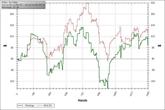 Новый год начался очень радостно!!! Из плюсов только то что рейкбек должен отбить мой слив в -12БИ при плюсовом ЕВ =)) При том что ЕВ не отражает полной сути происходящего, когда поцоны колят мои трибеты с парой двоек, восмерок или десяток на сет, и ловят этот сет, против моих АА. какая-та нездоровая тенденция последнее время пошла ))) мне то относительно все равно что для них это минусово на 20-50бб столах, но вцелом парни молодцы чо ^^ плюс после прочтения дневника Garika задумался о переходе на нл5.