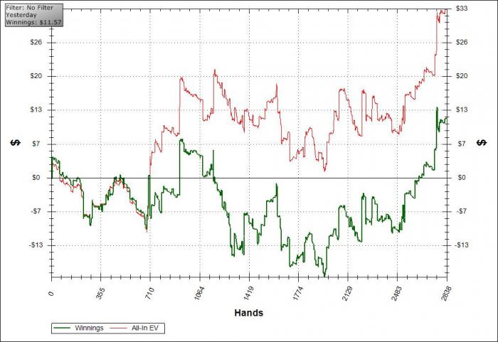 Отыграл 3 сессии, 1 на +10$ совершенно скучная и неинтересная а вот 2 рейк марафона удались на славу, хотя 1й был ужасен и очень противный, чуть больше 4к рук в ноль, 99% дистанции был в минусе канеш ^^ сегодня же все было приятней, хоть и EV меня не очень взлюбил, но хотя бы за децельный плюс спасибо!!!