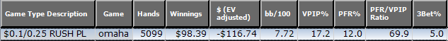 Просто я пока смутно понимаю как играть в 6макс Омаху(только ХА играю пока), а в раш омаху тем более не очень ясно, так что в основном буду в основном игру "поля" смотреть... С чем играют, сколько %, как себя ведут постфлоп... в Раше ведь под каждого не подстроишься...
