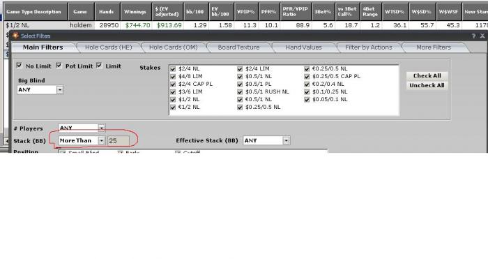 2. Т.к. основная статистика на меня набрана когда я имел стек ~20ББ, то в остальных случаях оппы не совсем адекватно определяют мой диапазон.