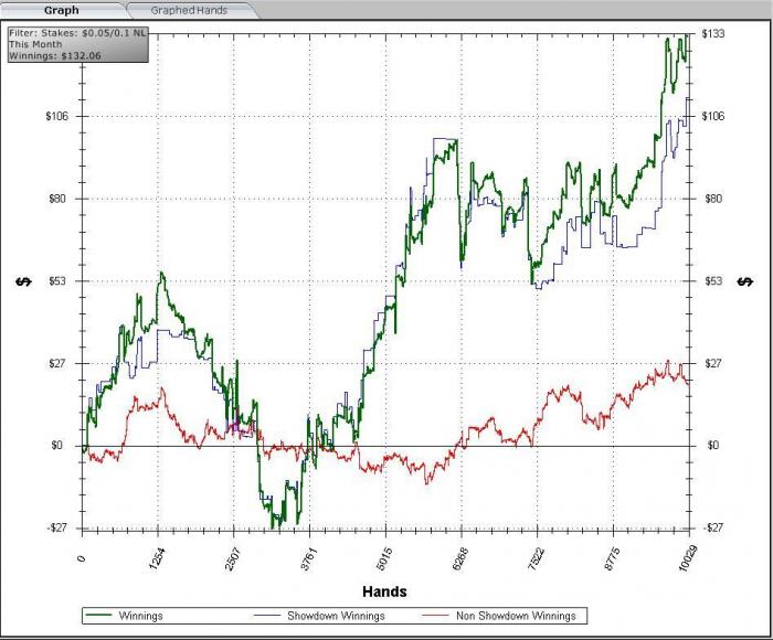 Во второй половине 2010 все в покере складывалось не так хорошо, как в первой => нервы слегка расшатались. Больше всего на свете сейчас моя неуравновешенная натура жаждет стабильности. Стабильности в плане кол-ва часов, проведенных за столами и качестве игры - и оба фактора равноценны. Отсюда следует первая маленькая цель.