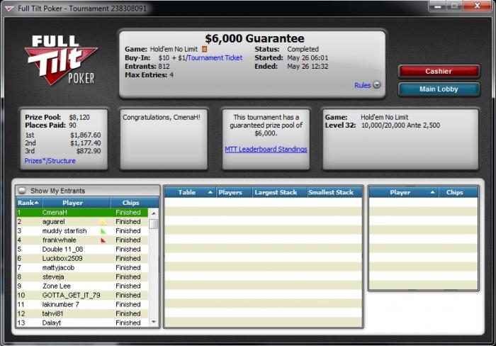 Poker Stars $10+$1 No Limit Hold'em Tournament - t12500/t25000 Blinds + t3125 - 9 players - View hand 2321589