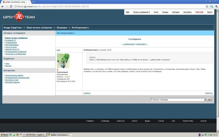вроде ему можно доверять, и рейтинг у него есть. сегодня он мне придумал новую историю, и 300+100$ успешно отправились на его акк ФТП. прошло время, стало ясно что он меня обманул. он мои деньги просто проиграл на ФТП. клянётся что до 22:00 МСК сегодня вернёт, но я уже слабо в это верю. по 10 новых отговорок у него. Я не понимаю как человек вроде с хорошим рейтингом на форуме и отсутствием негативных отзывов в профиле способен такое чудить... но факт остаётся фактом. в подтверждение моих слов прилагаются скрины и доказательства перевода на его счет.