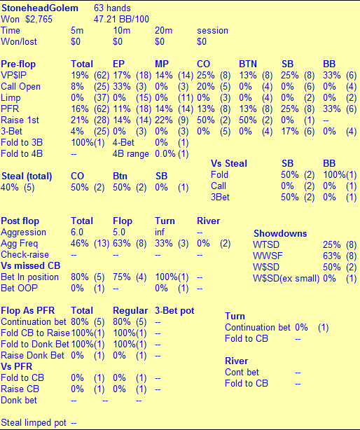 UTG+1 StoneheadGolem ($8,887) - reg, viigrival 1k Monday, 100$+R