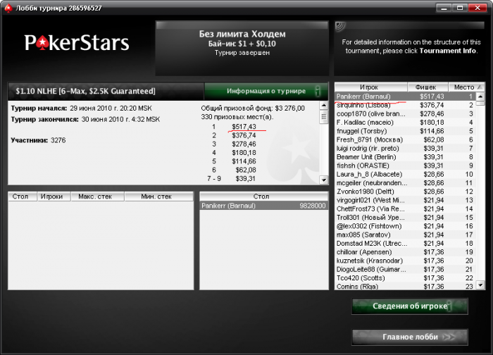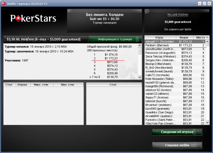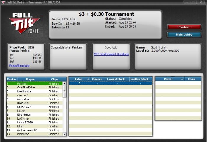 Играю в основном только дешевые ($1 - 11) МТТ по NL Holdem. Так же очень нравятся mix игры (h.o.r.s.e. ,8 game и т.д)