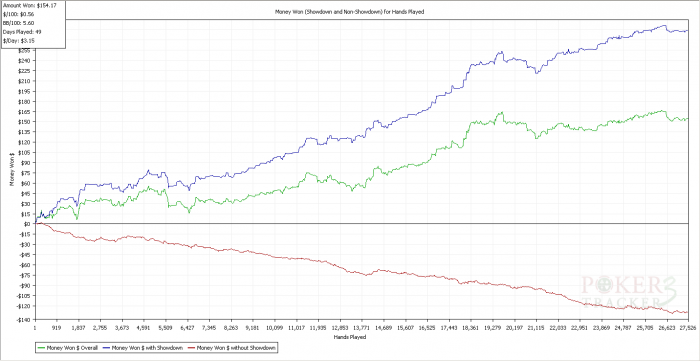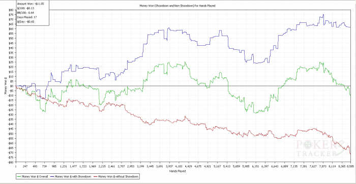в плюс но очень смущает напраление красной линии, понимаю что у меня проблемы в игре ,пробую играть nl10 за 6к рук в минус 2 стека . Посоветуйте какие статы подкоректировать