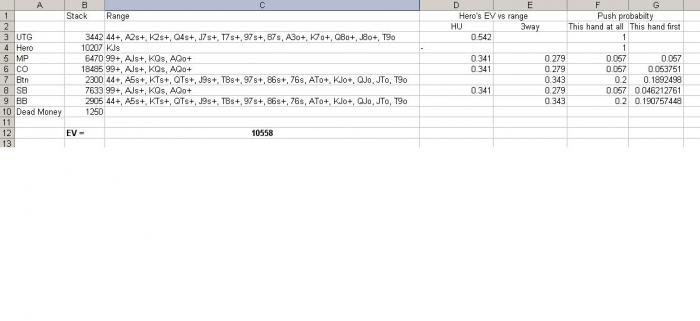 Хотя многое все-таки зависит от диапазона УТГ. Например, если у него будет 30% в данной ситуации, то KJs - это самый низ нашего диапазона в данной ситуации.