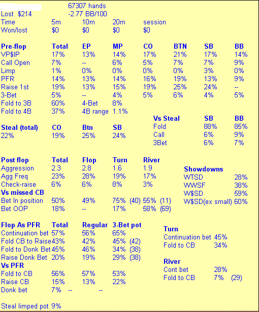 Собственно ниже скрин из ХМ по оппоненту, предлагаю вам рассказать что вы думаете об этом оппе, о его стиле, и как бы вы против него играли в той или иной ситуации.