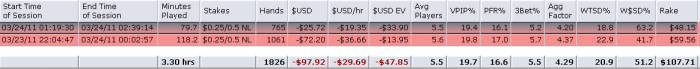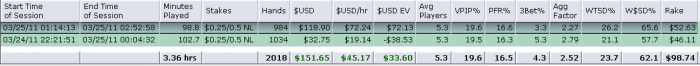 Вчерашний "ночной" подход Результат конечно приятный, но процесс был совсем не комфортный =\ За мной сидело столько прибитых на всю голову регов, что в первый подход меня 3бетили в 20% моих рейзов. При чем естественно большая часть 3бетов была без позиции.