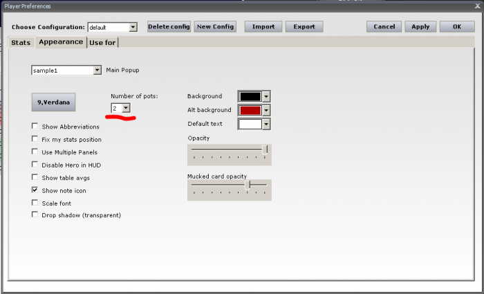 Мой "ночной" покер вчера меня совсем не порадовал. Принял решение отмечать спорные/сложные раздачи во время игры. Технически я это делаю так: На столе отображаются результаты последних 2-х раздач. Для этого нужно в ХМ зайти в меню "HUD Options -> Player Preferences -> Appearance" и выставить необходимое количество раздач в списке "Number of pots":