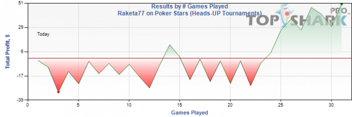 Миксую 22 турбо и евровые 10, иногда 20е. Играл также турниры, в одном был очень хороший стек в начале- 12тыс при среднем 4тыс, но потом вообще карту отрубило(как всегда), блаинды подросли, и уже не первый раз с АК попал в АА, на флопе еще одного А положили для приличия.