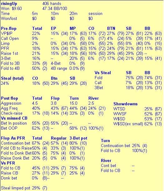 С понедельника хочу начать небольшой марафон - 10К рук за 5 дней на NL4/NL5. Результаты буду выкладывать ежедневно! ( я еще паралельно работаю, так что не смогу играть больше) Если винрейт по ЕВ будет 6бб на 100 рук, то на 6 день начну миксовать с NL10, и задержсь там пока не набью банкролла. В данный момент он составляет 250 долларов.
