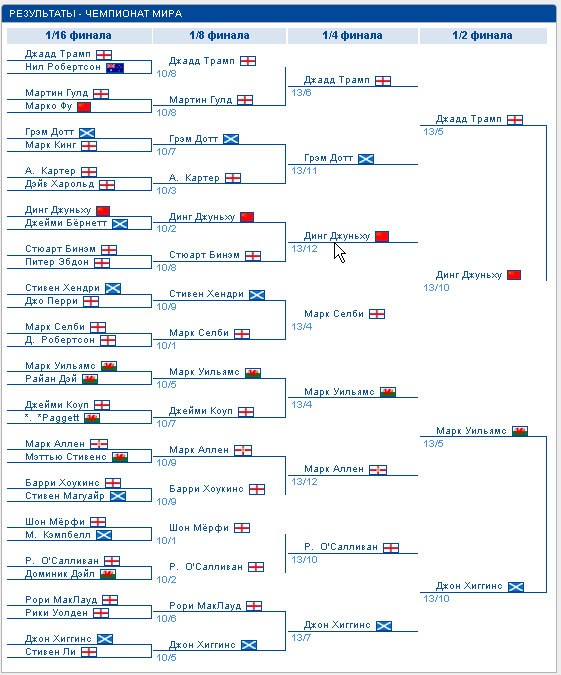 Начало четвертьфинальных поединков оказалось потрясающим. Все восемь игроков нашли, чем восхитить зрителей. Было проведено 48 фреймов, в ходе которых зафиксировано 11 сотенных серий. Этот мощный залп был произведён на фоне напряжённой, а порою и драматической борьбы."