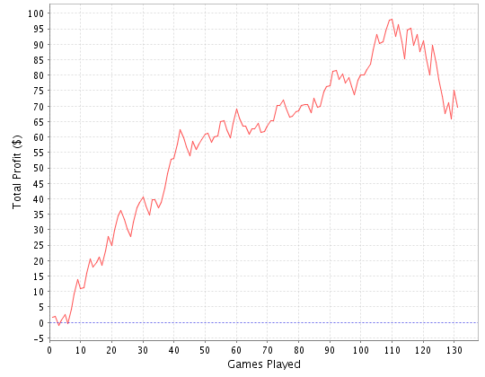 Но на новом лимите уровень оппонентов возрос и я стал чувствовать, что уступаю многим регам в знании пушбота. Соответственно ROI упал и начался спад.