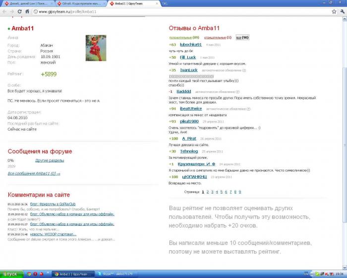 А ведь рейтинг у меня - дай Бог каждому. Да и сообщений вроде больше десяти наберется.