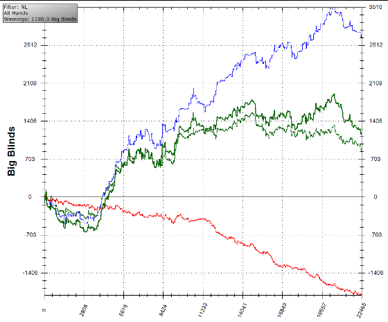 Играю НЛХ СХ. Лимит НЛ10. Начинал с НЛ5, прошел без проблем. На НЛ10 возникли проблемы – дисперсия и лики дают аццкую смесь, убивающую мой винрейт. А это плохо, будем исправляться.