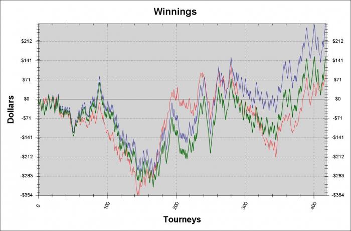 Стараюсь постоянно анализировать, эти 2 месяца играю одинаково (играю 4-5 столов имхо сложно быстро изменить игру при таком количестве), может как раз это и плохо, т.к. после черн.пятницы (когда и началась эта болтанка) амеров-фишей поубавилось, а может "неамеры" играют в другой покер ;) донкают флоп однозначно нааамного больше чем раньше.