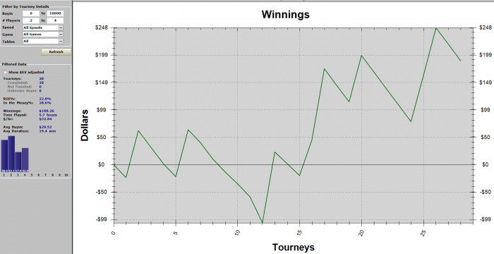 Буду играть тремя сессиями по 20, 15 и 15 турниров. Каждый день буду выкладывать графики, и иногда интересные раздачи.