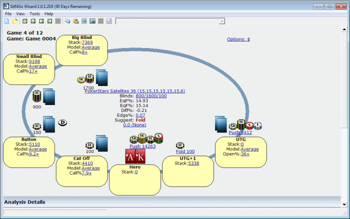 Я конечно все понимаю - пусть "коротыши" дерутся, но блин - SitNGo Wizard говорит, что мы тут вообще не должны колить. Даже если у нас одноматсные тузы!!!