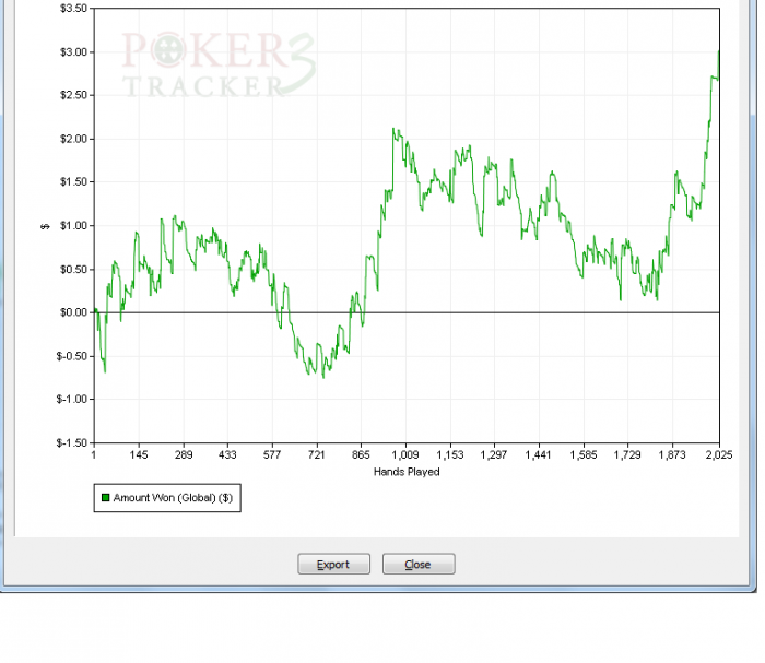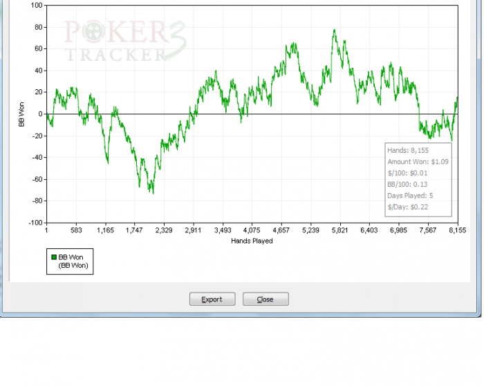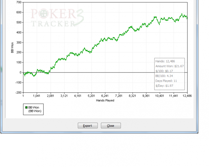 Результаты дня: отыграл 2 тыс рук (планировал 3 тыс но не смог) даже в + , не знаю выкидывать раздачи или нет (они мало кому интересны 02.04 цента )) но одну выкину
